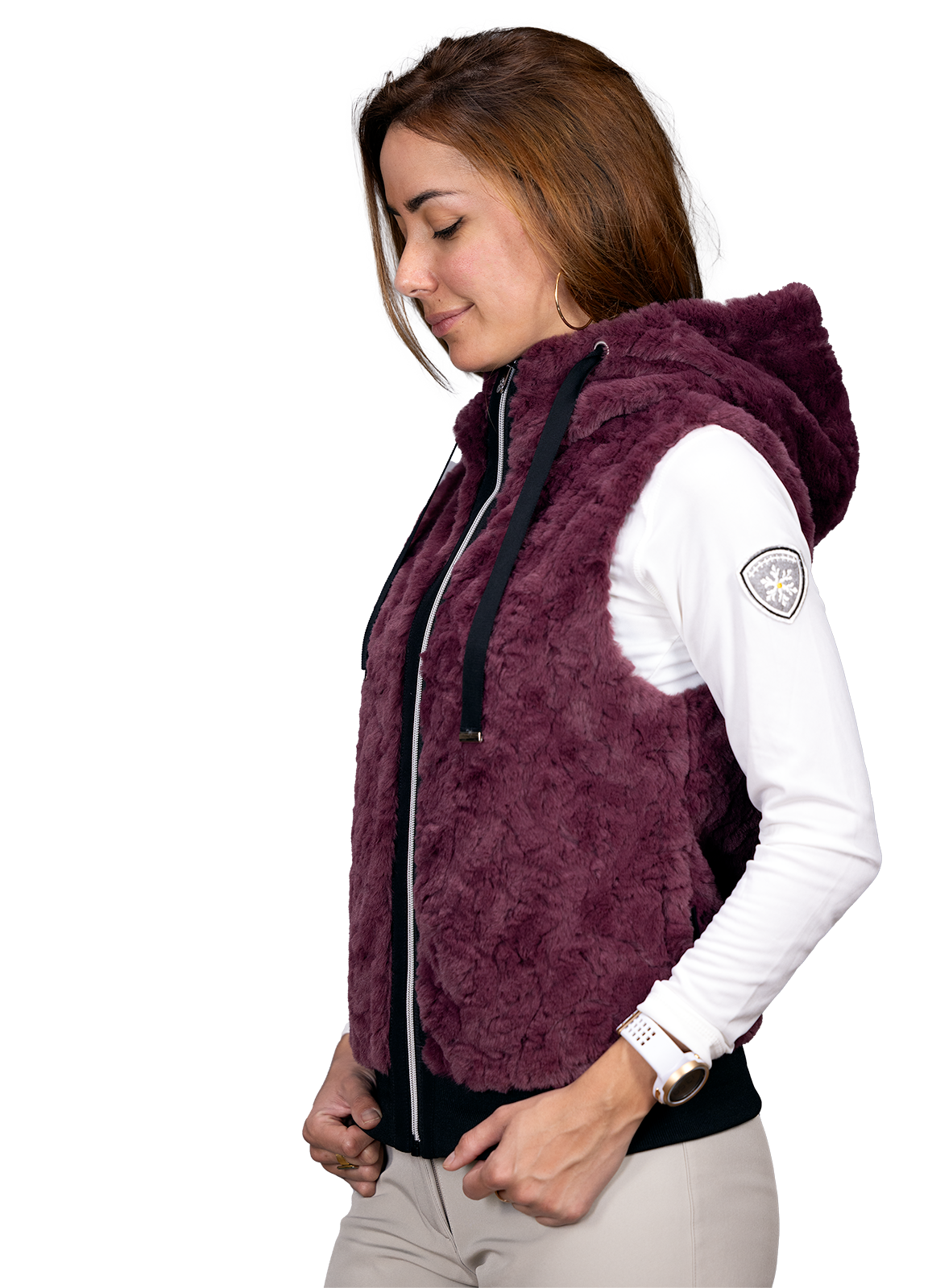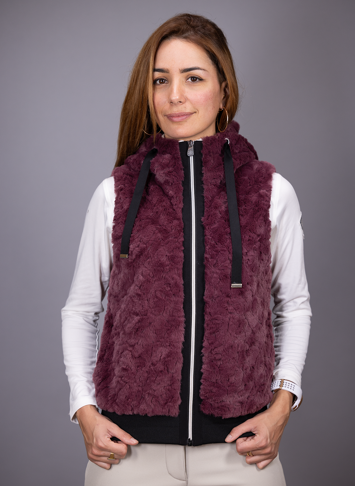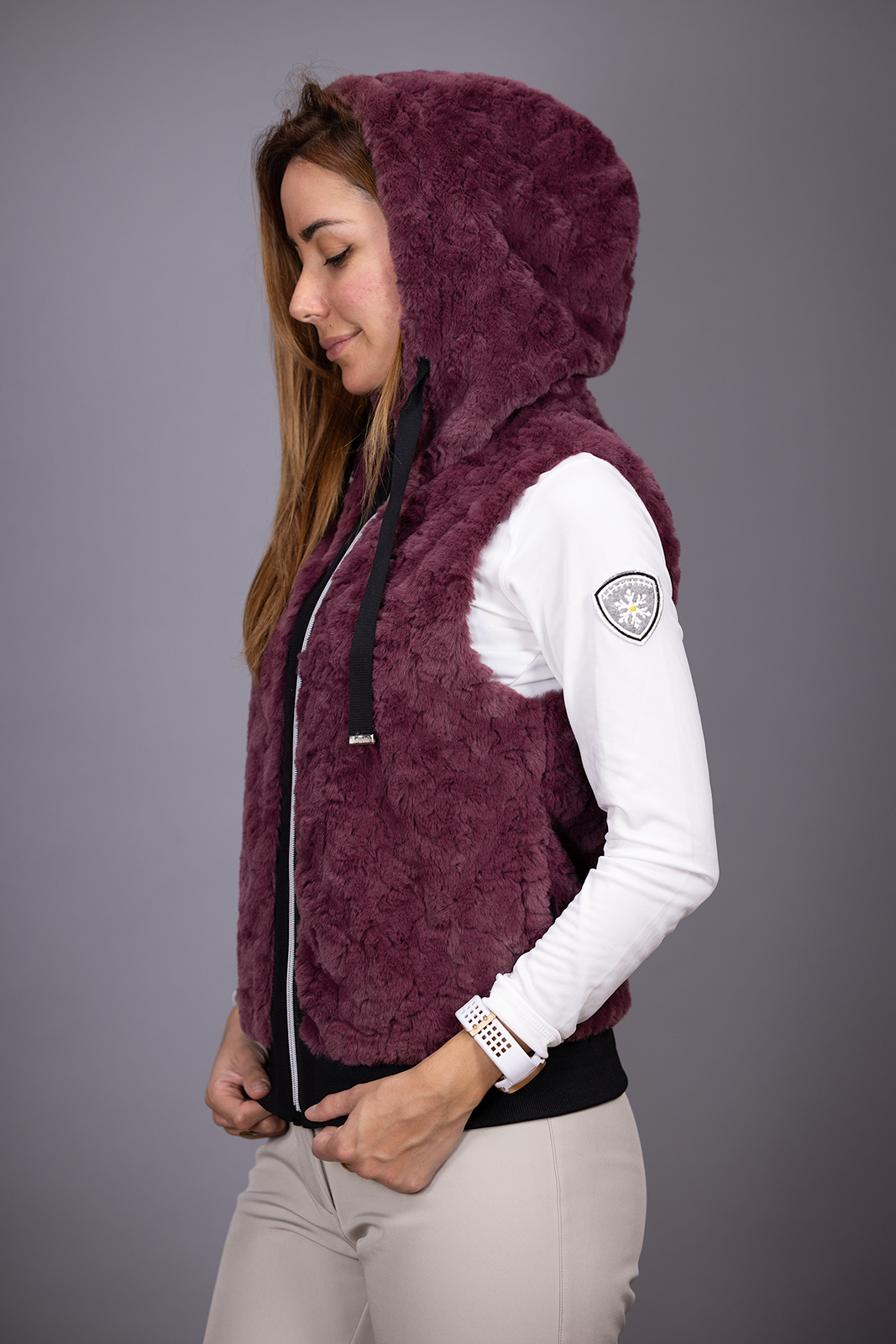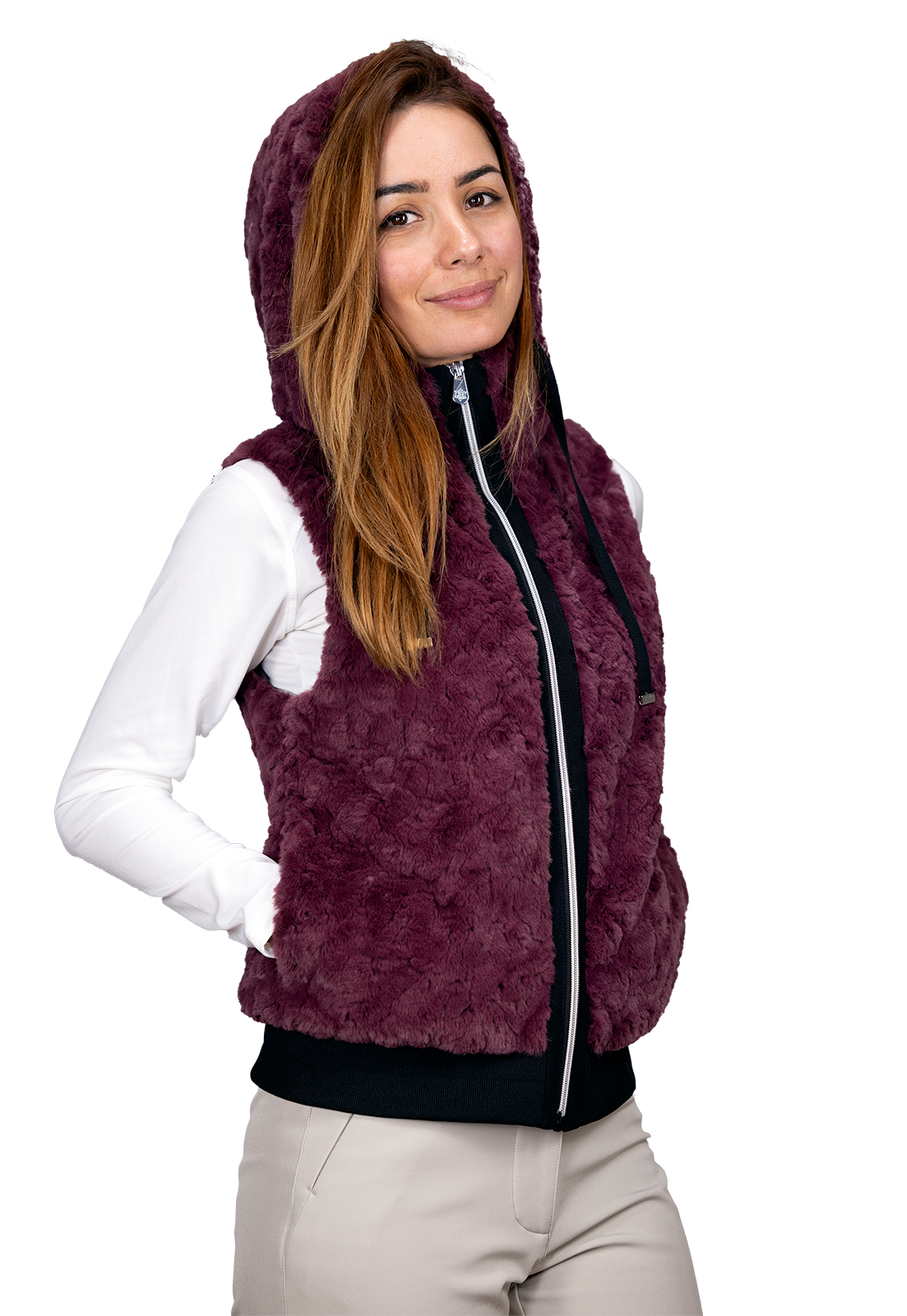 - Un gilet capuche fourrure à porter à la ville comme à la montagne.