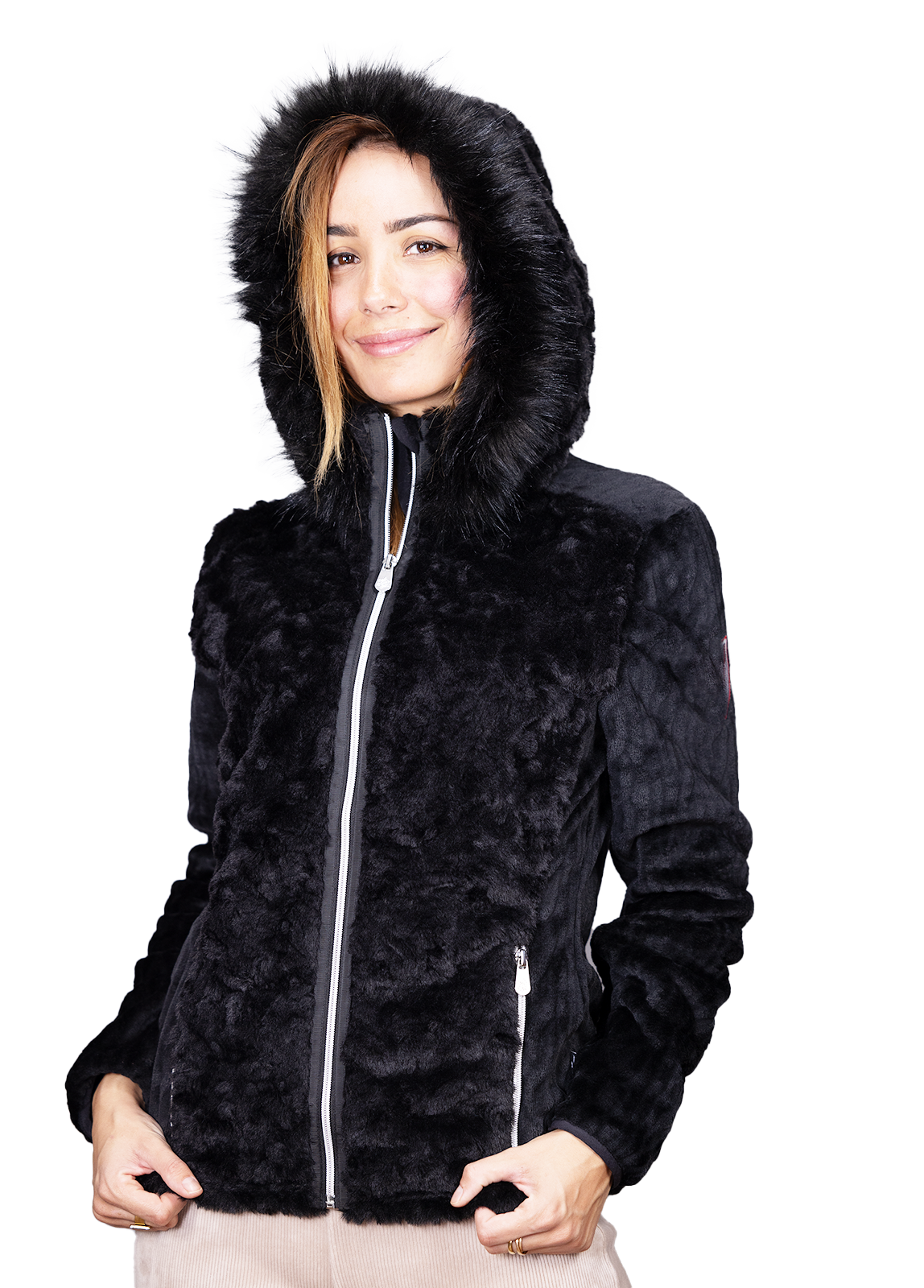 ROMY veste femme capuche fourrure , une veste à la fois chaude , élégante et  ultra confort ! Un mélange de polaire fantaisie et de fourrure ,