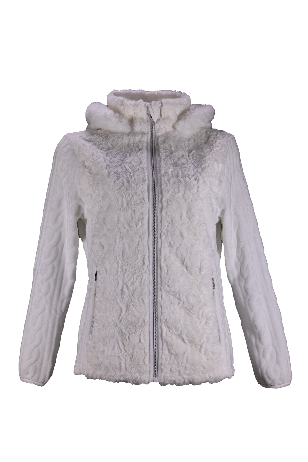veste femme capuche fourrure Romy, une veste à la fois chaude , élégante et  ultra confort , un mélange de polaire fantaisie et de fourrure , un vêtement très féminin